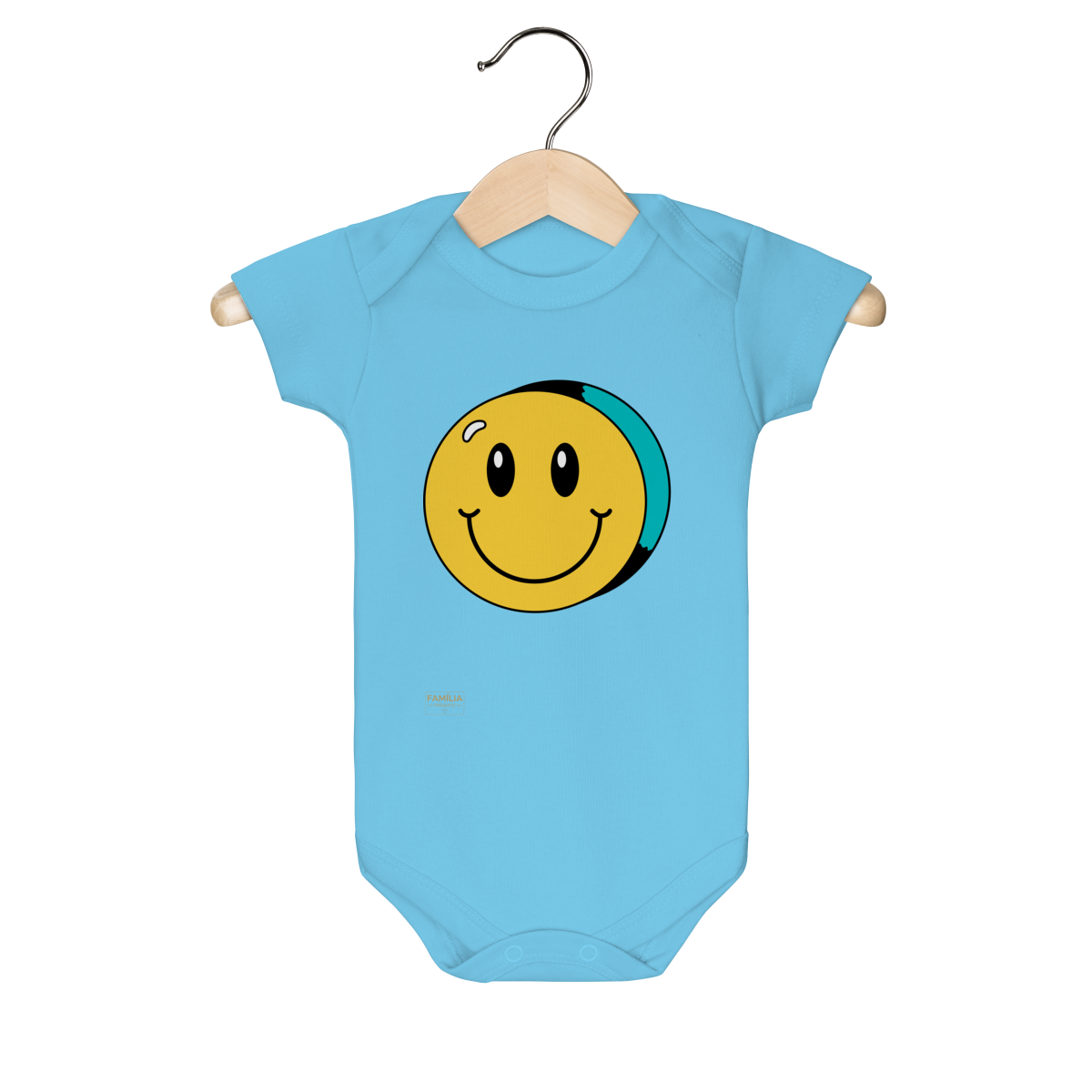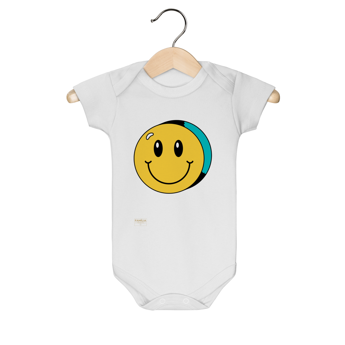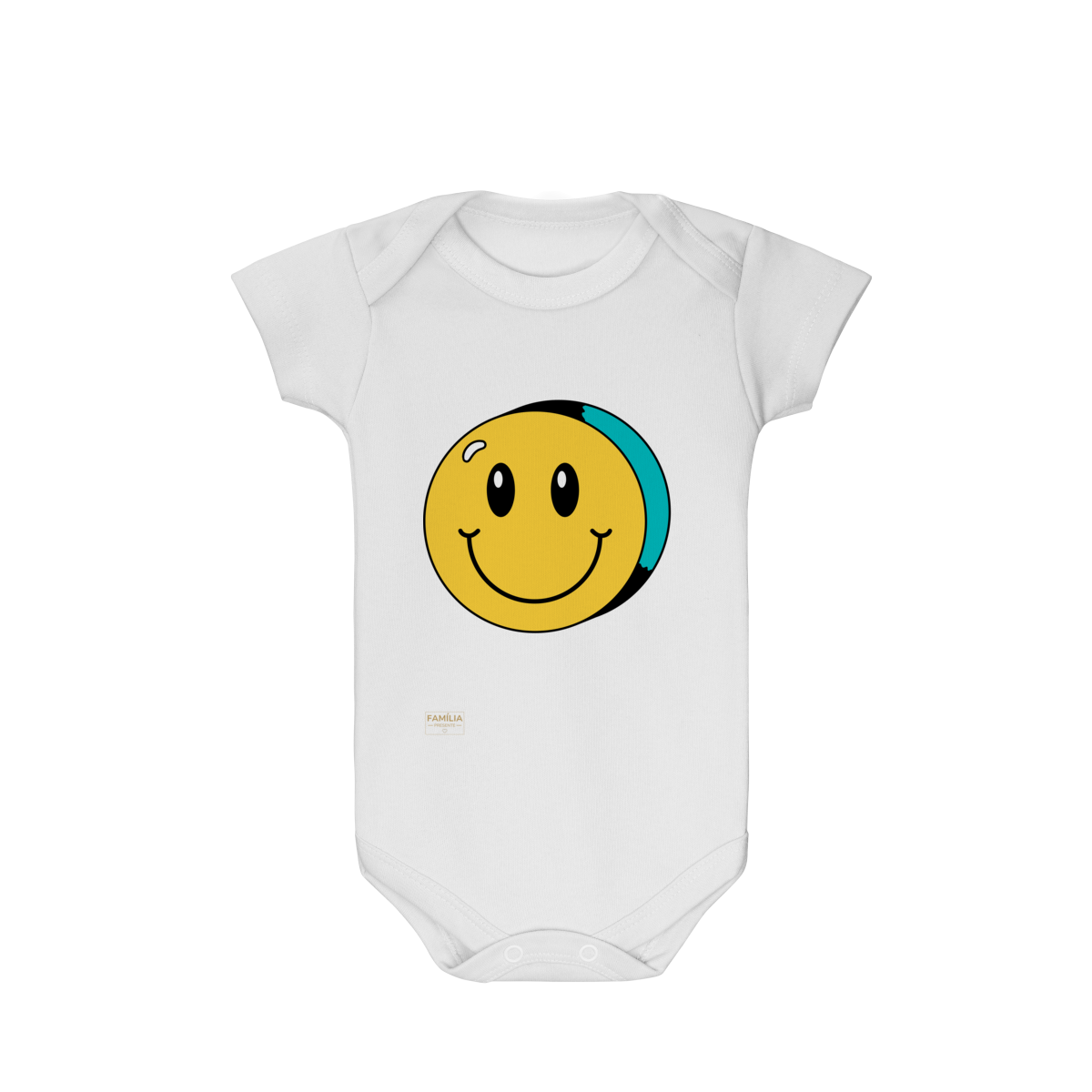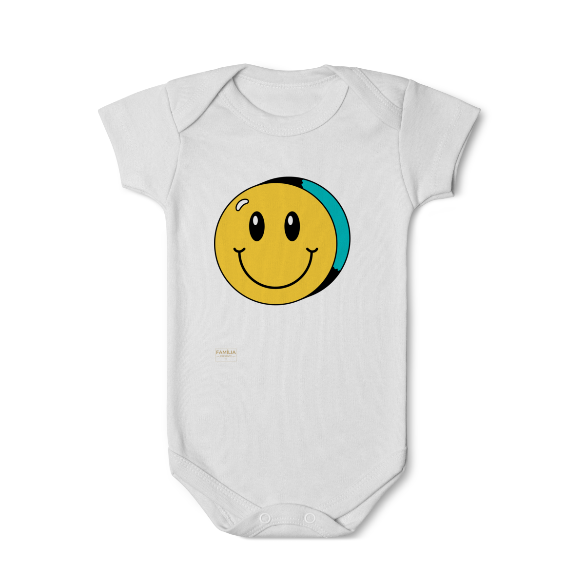 Com estampa inspirada nos ícones pop dos anos 90, a Body Infantil - SMILEY é pura energia boa — um lembrete divertido de que alegria também se veste.