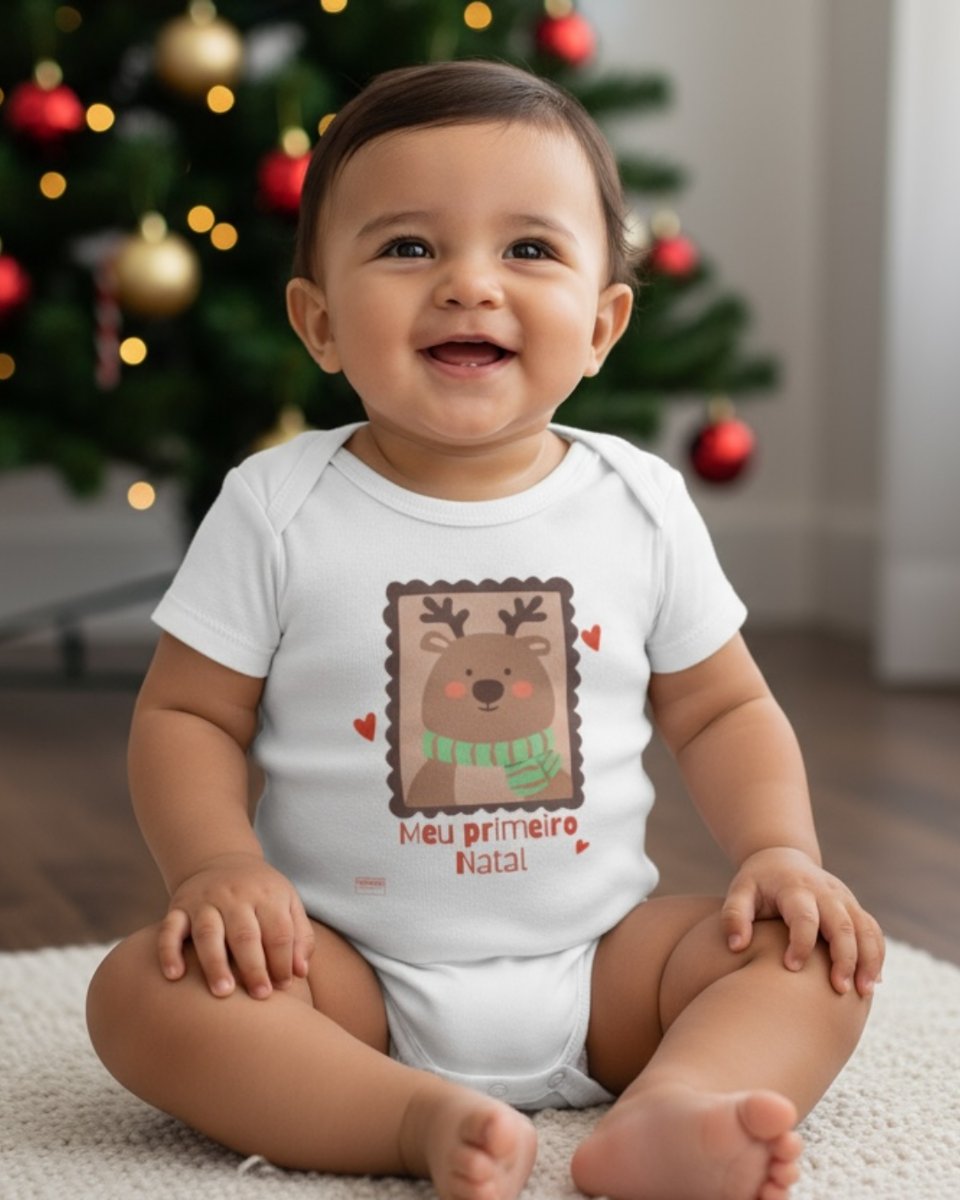 A coleção “Meu Primeiro Natal”, da Família Presente, foi criada para celebrar esse momento com conforto, afeto e estilo. Cada body natalino infantil traz uma estampa exclusiva — Rena, Urso, Tigre e Oncinha — inspirada na doçura e na alegria das primeiras descobertas.