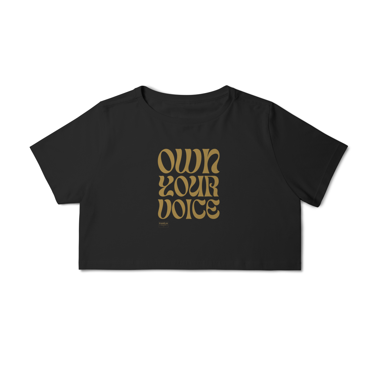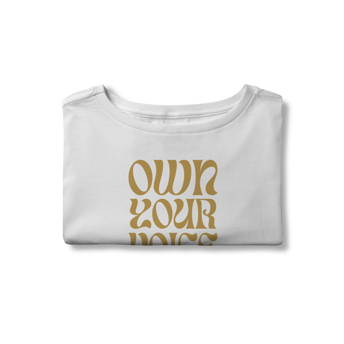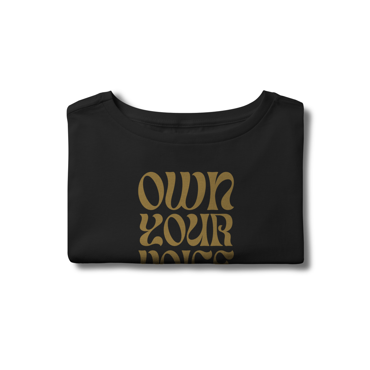 Com design retrô e tipografia marcante, OWN YOUR VOICE é um lembrete para não silenciar o que te move. Vista a sua voz, abrace a sua expressão e celebre o poder de ser quem você é — sem tradução necessária.