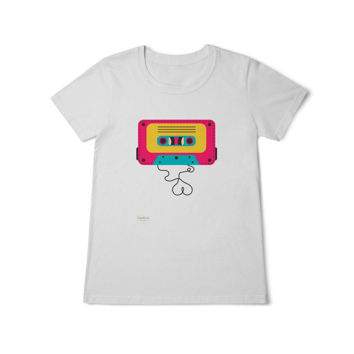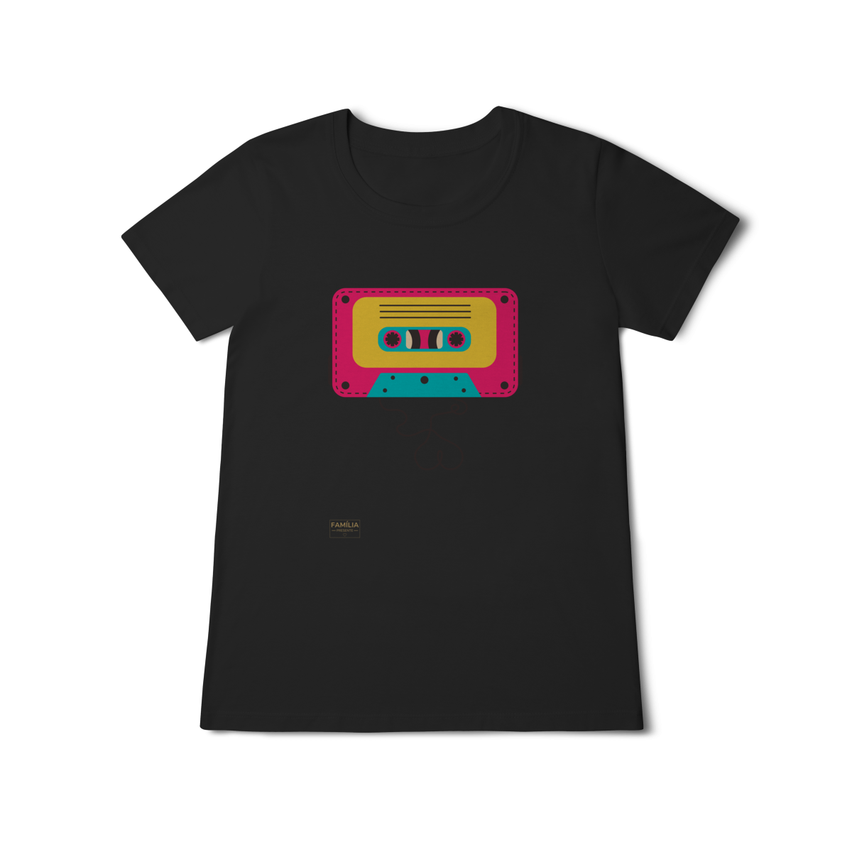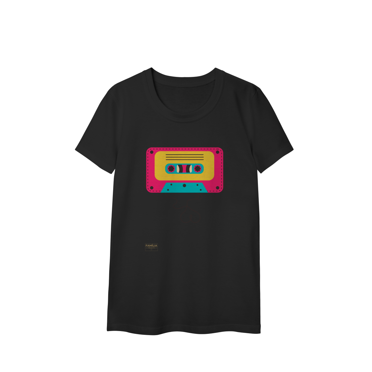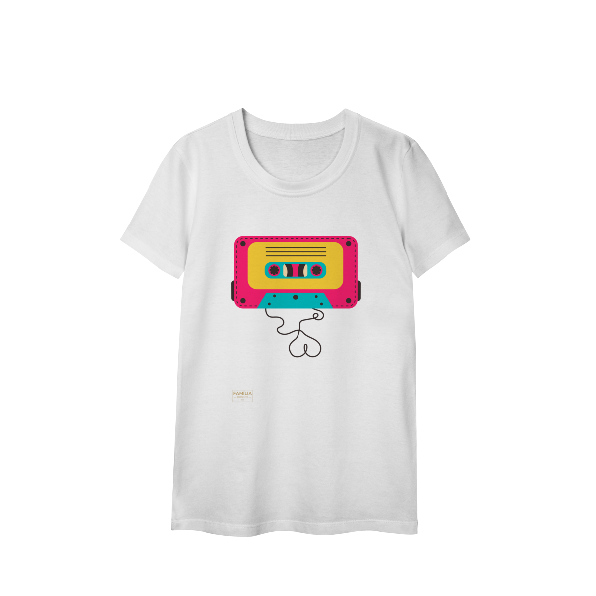Camiseta FITA CASSETE celebra os dias em que a trilha sonora vinha enrolada em fita — e cada lado tinha um sentimento diferente.