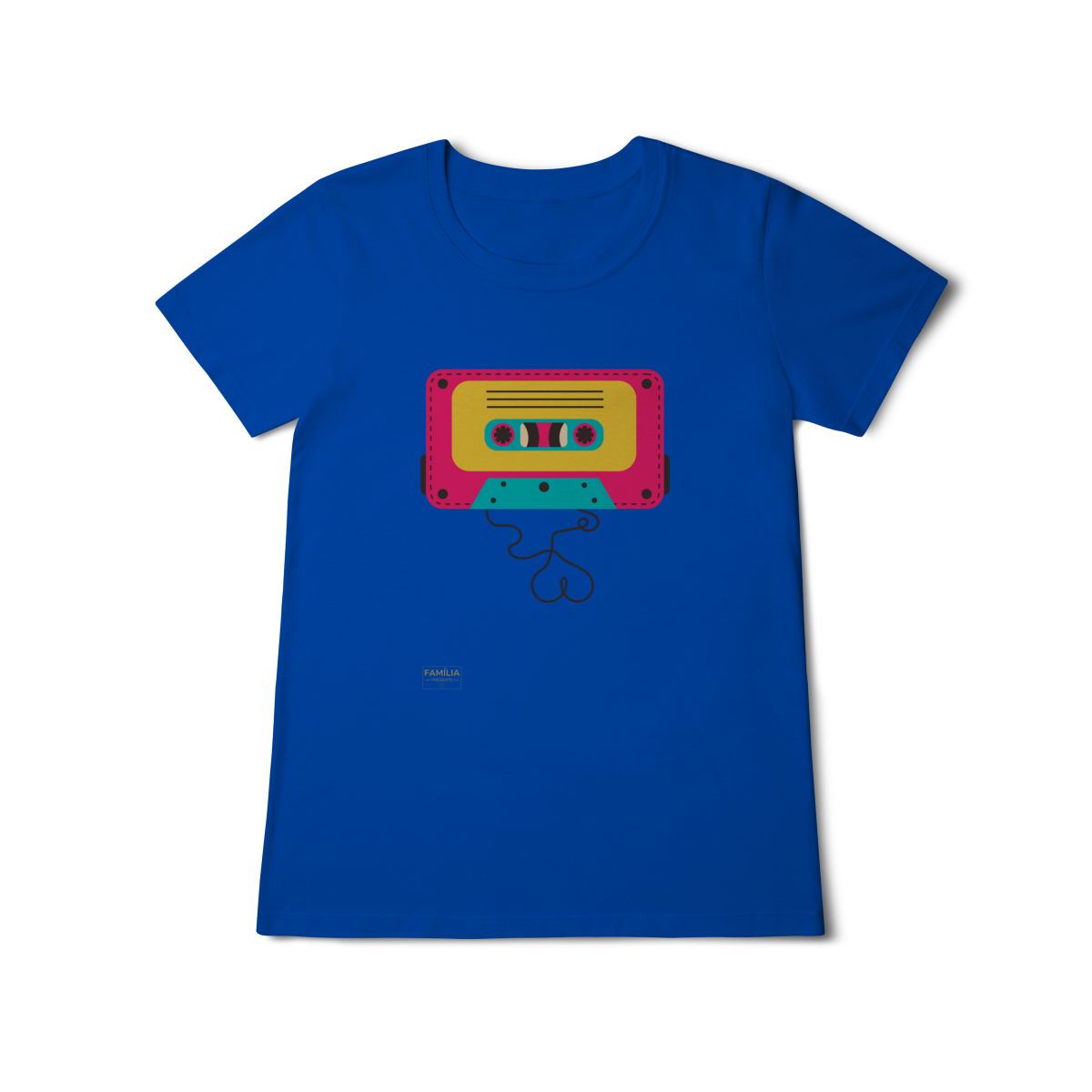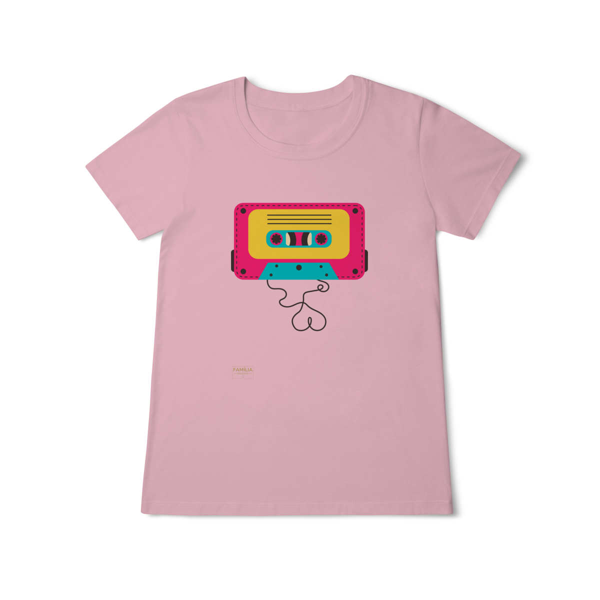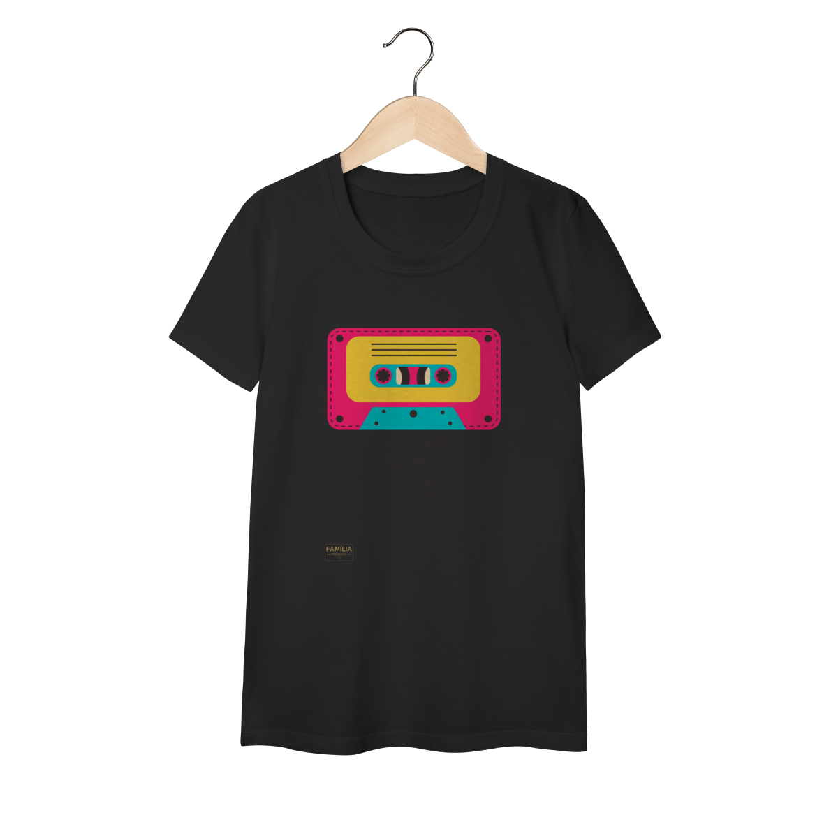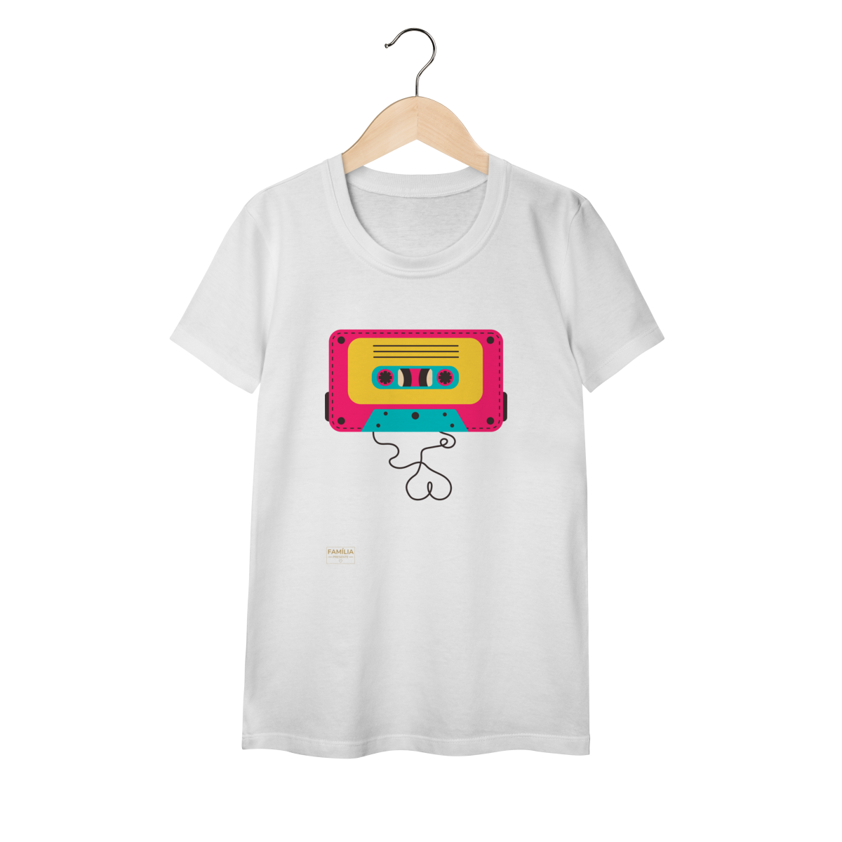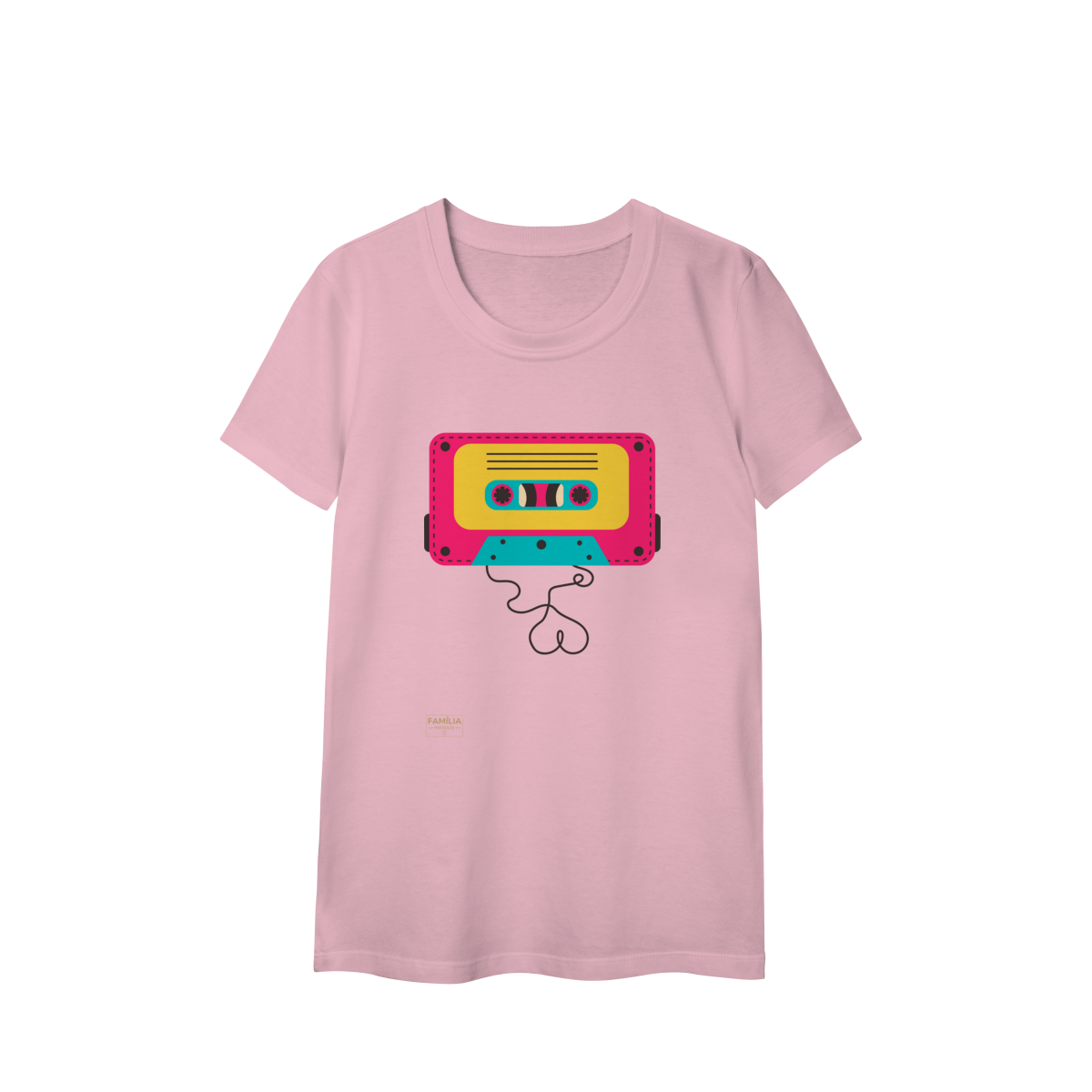 Camiseta FITA CASSETE celebra os dias em que a trilha sonora vinha enrolada em fita — e cada lado tinha um sentimento diferente.