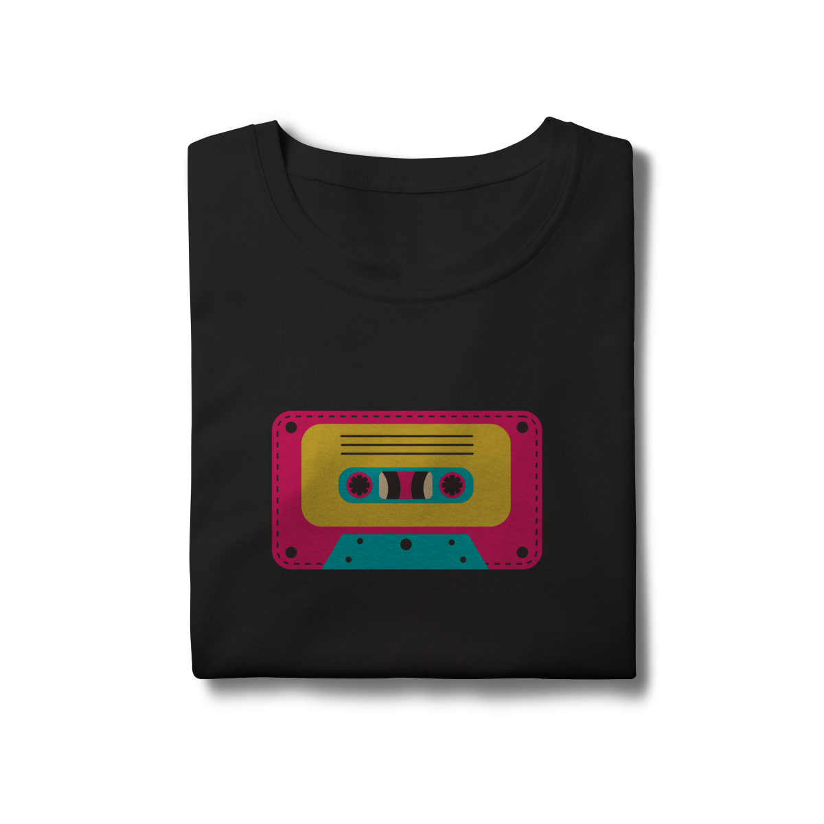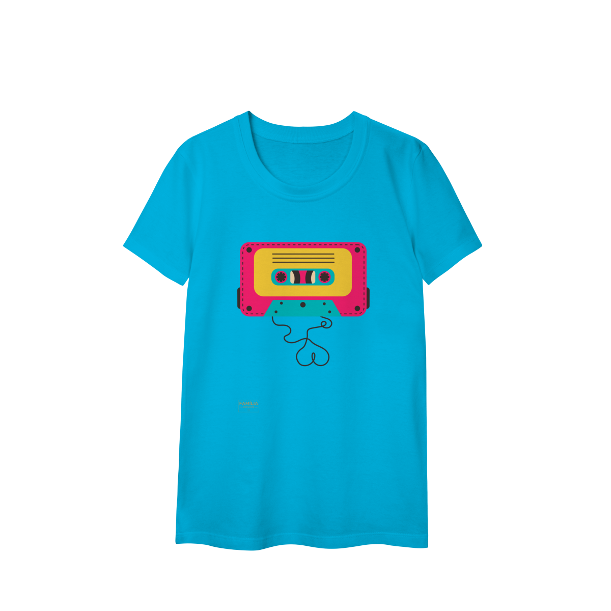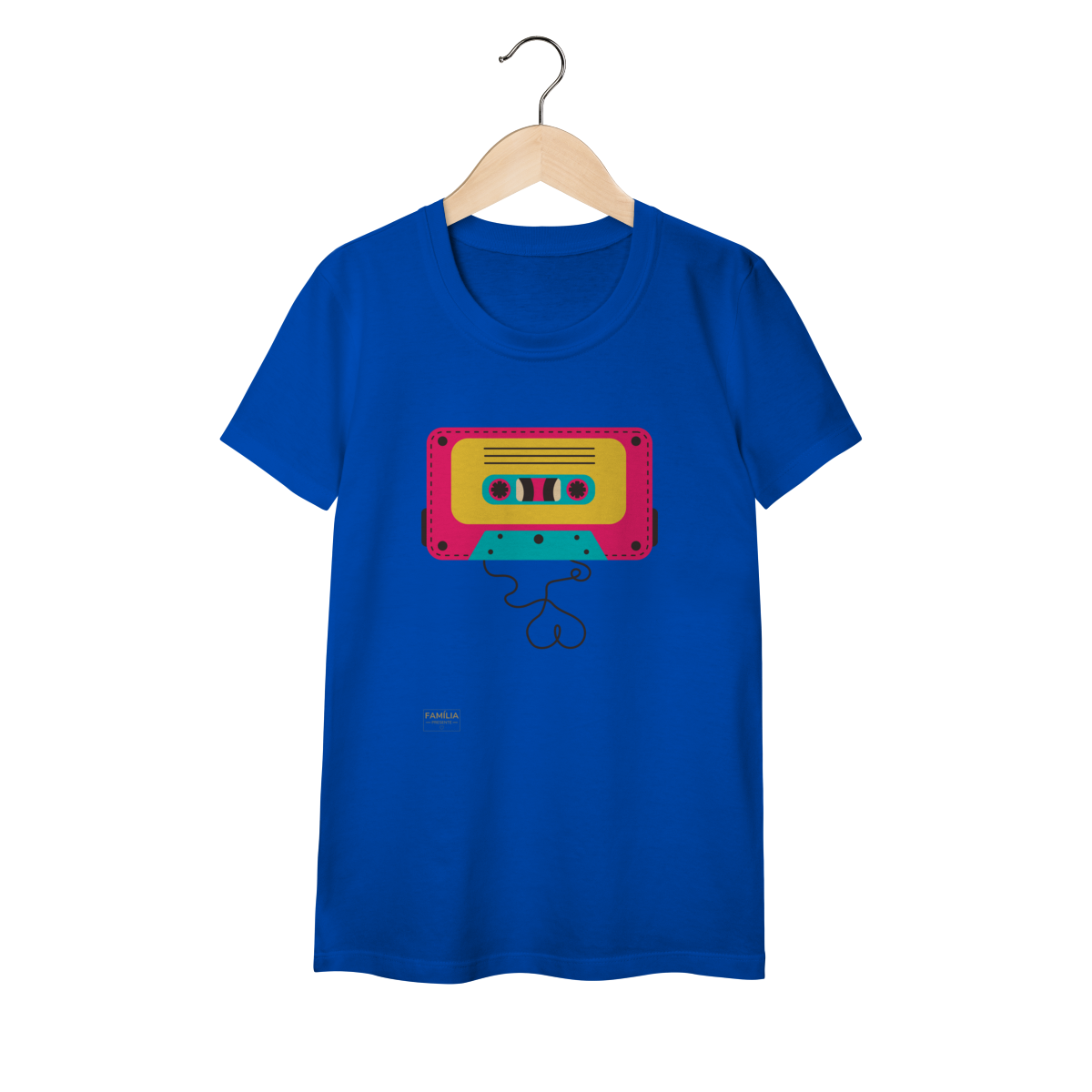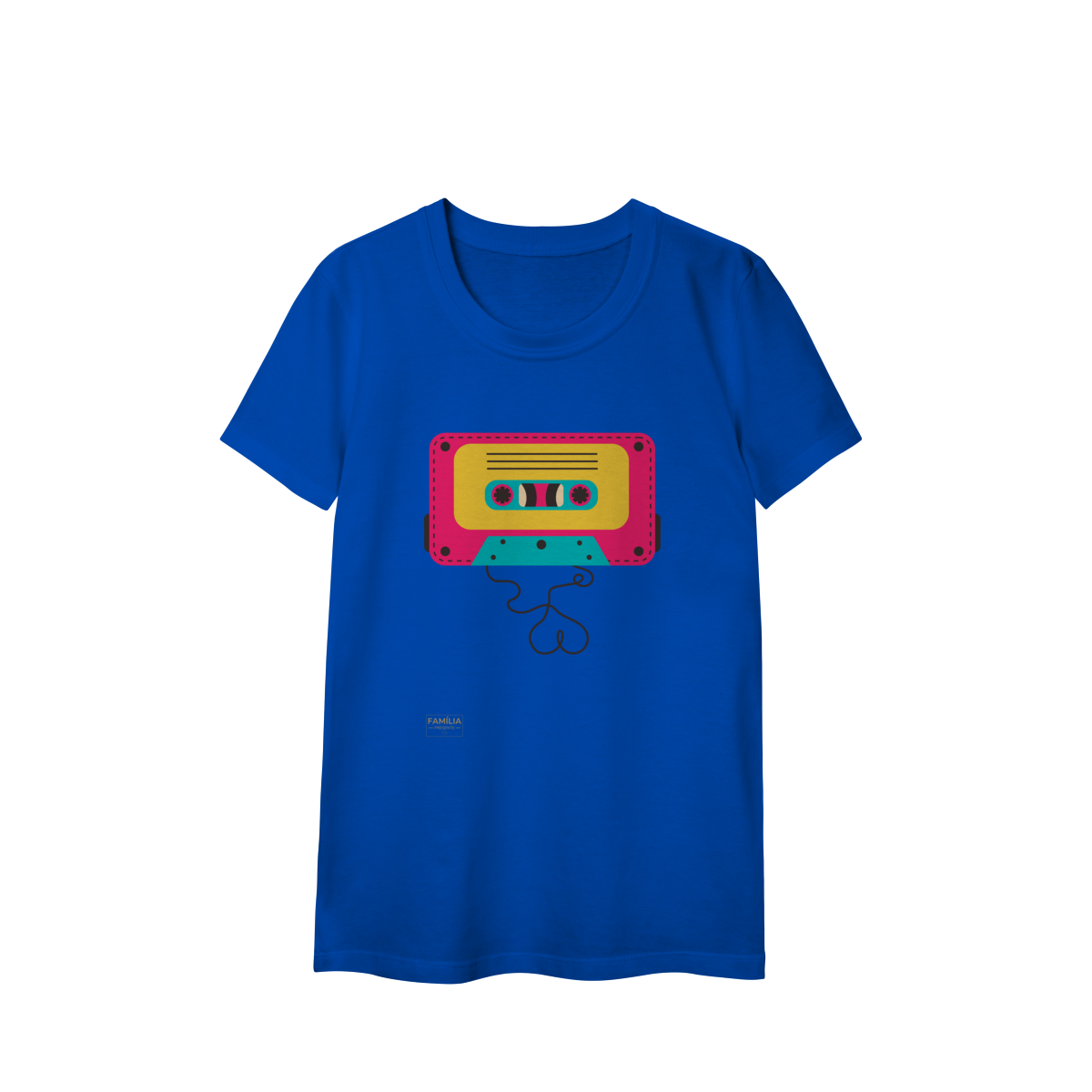 Camiseta FITA CASSETE celebra os dias em que a trilha sonora vinha enrolada em fita — e cada lado tinha um sentimento diferente.