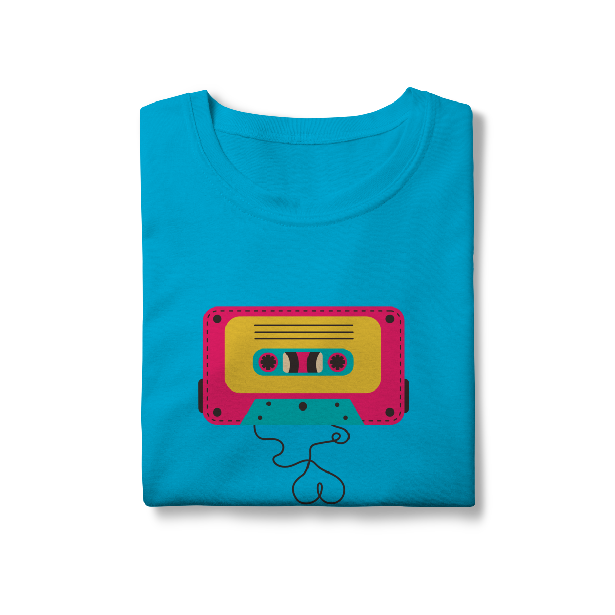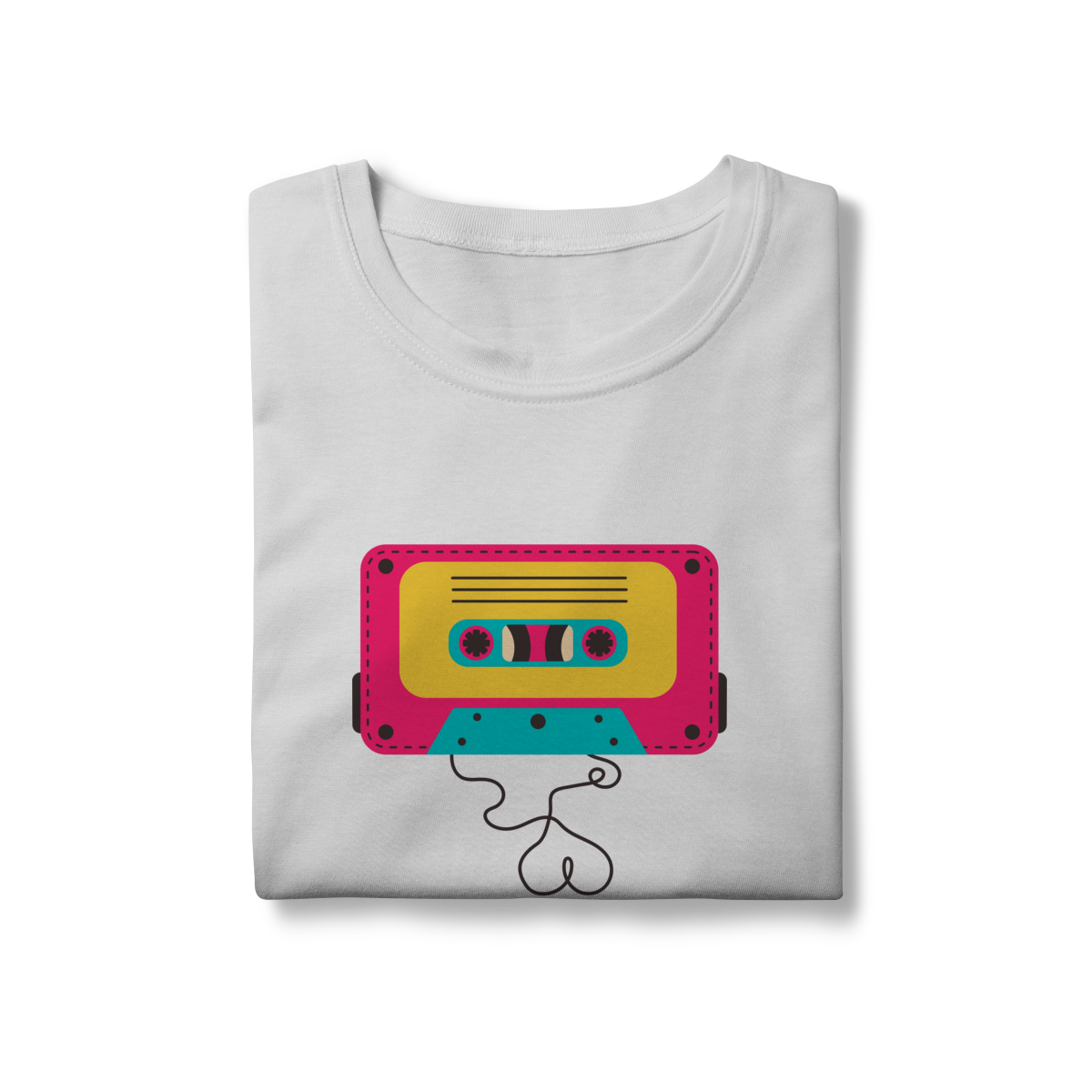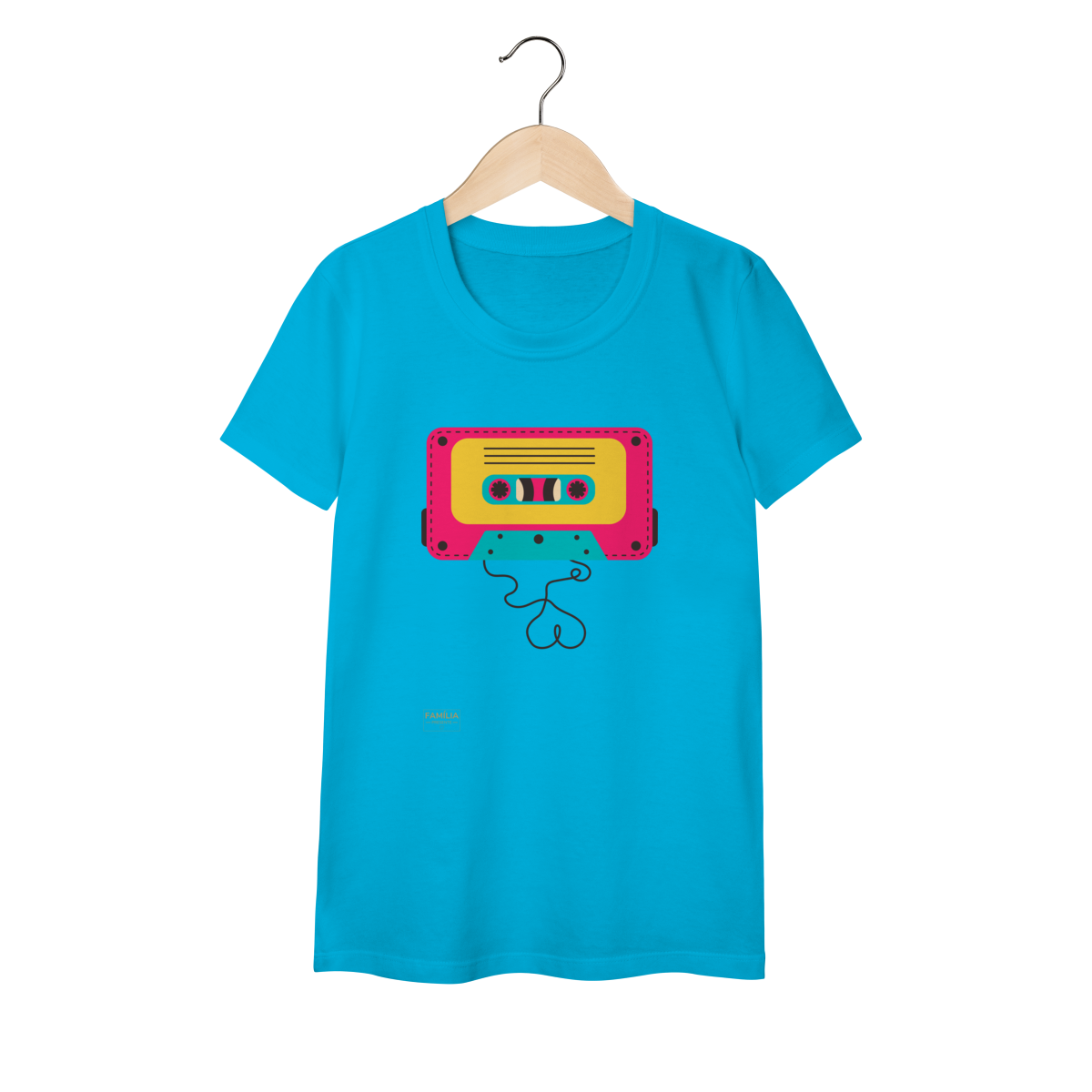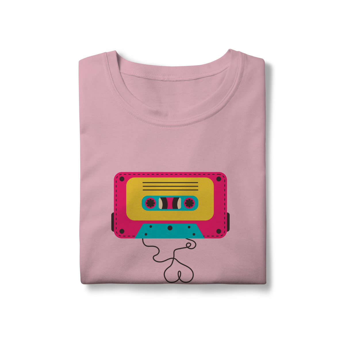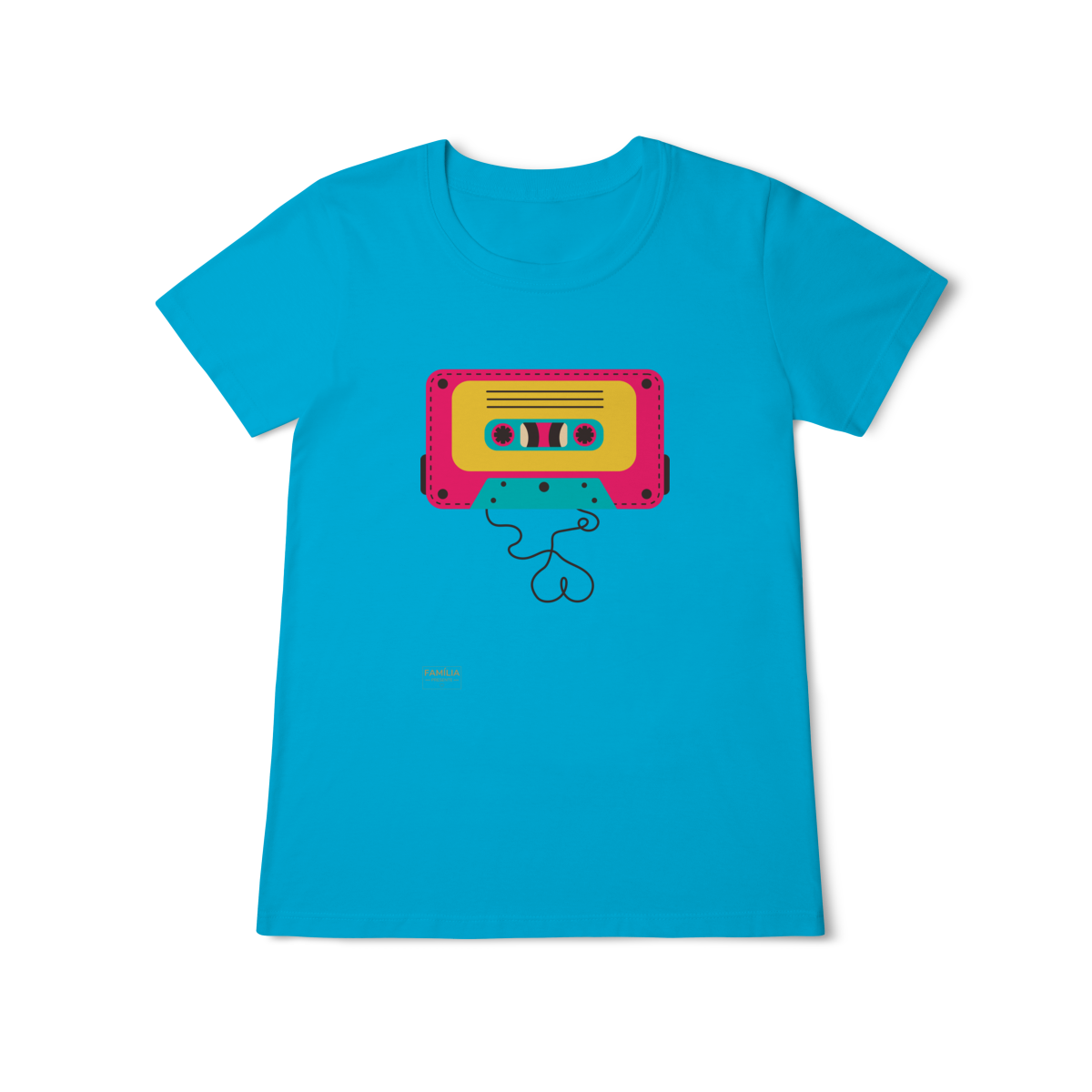 Camiseta FITA CASSETE celebra os dias em que a trilha sonora vinha enrolada em fita — e cada lado tinha um sentimento diferente.