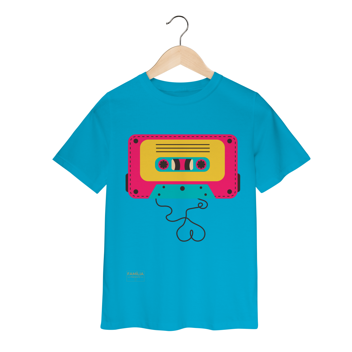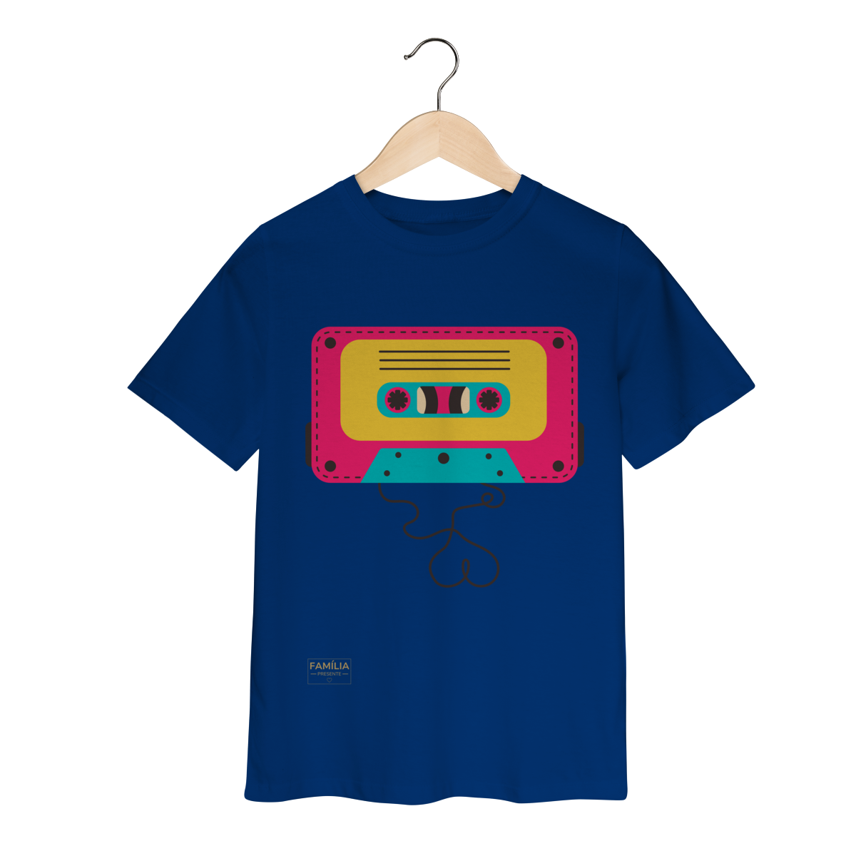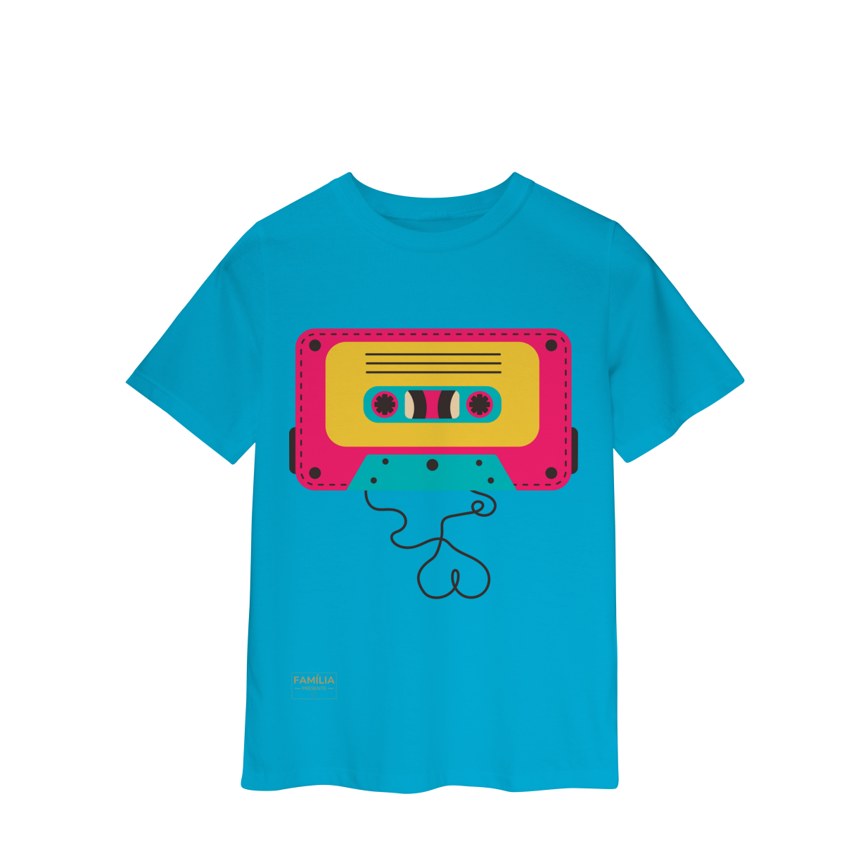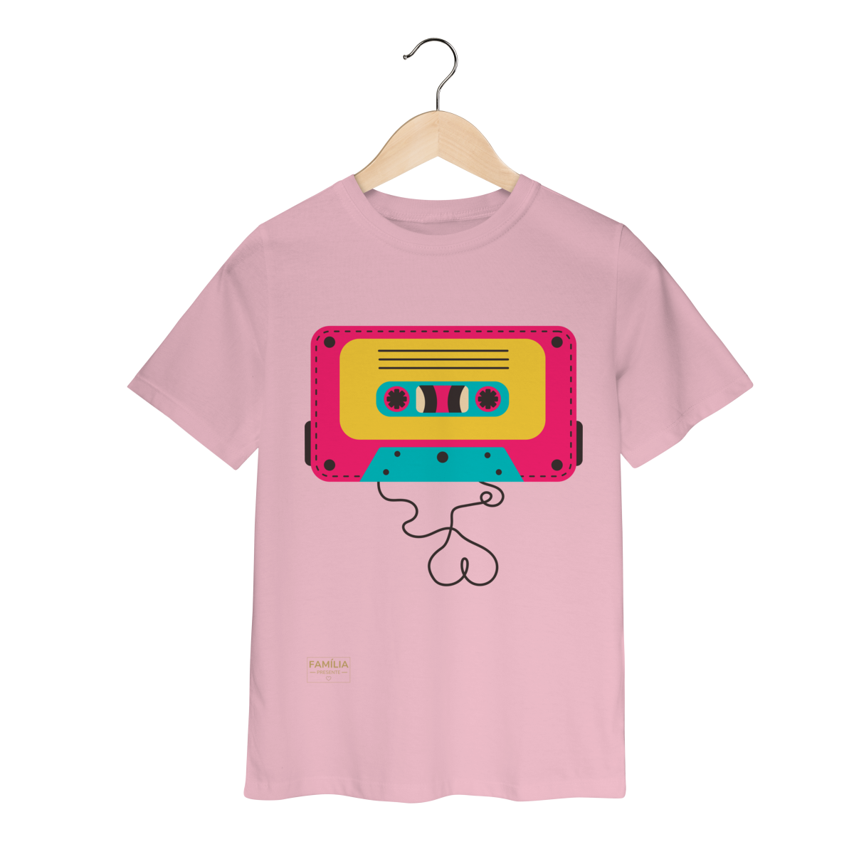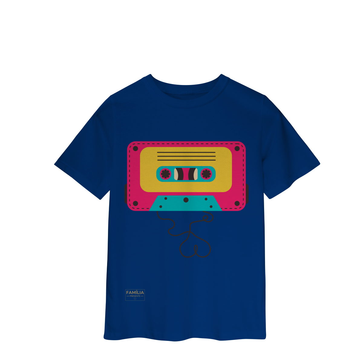 Camiseta FITA CASSETE celebra os dias em que a trilha sonora vinha enrolada em fita — e cada lado tinha um sentimento diferente.