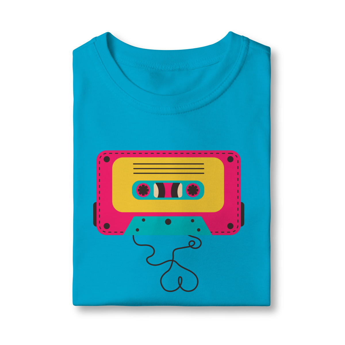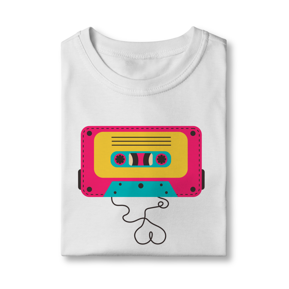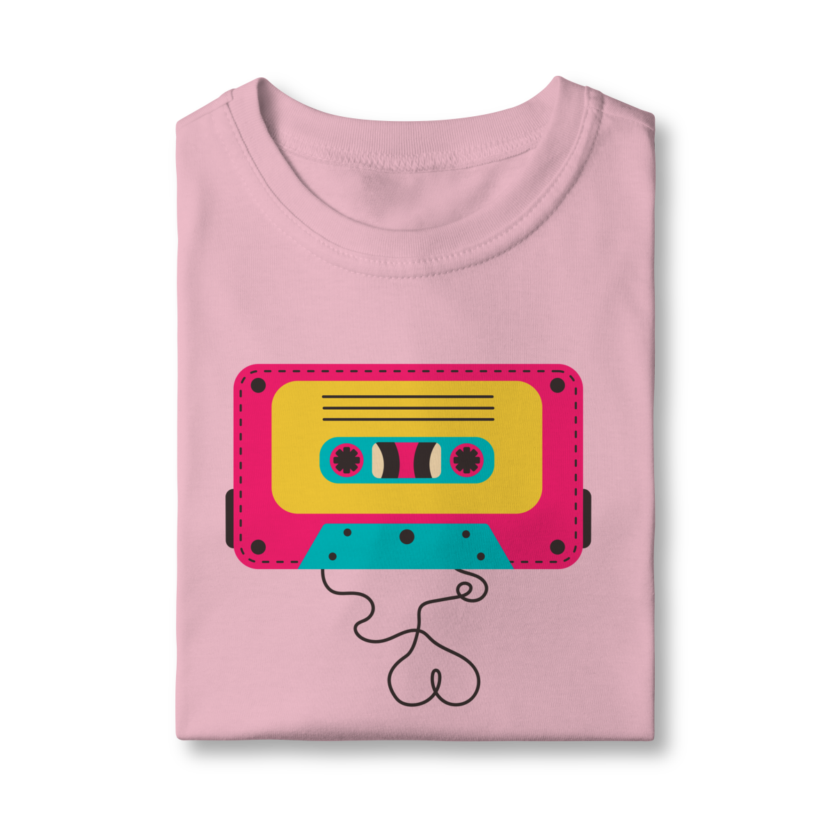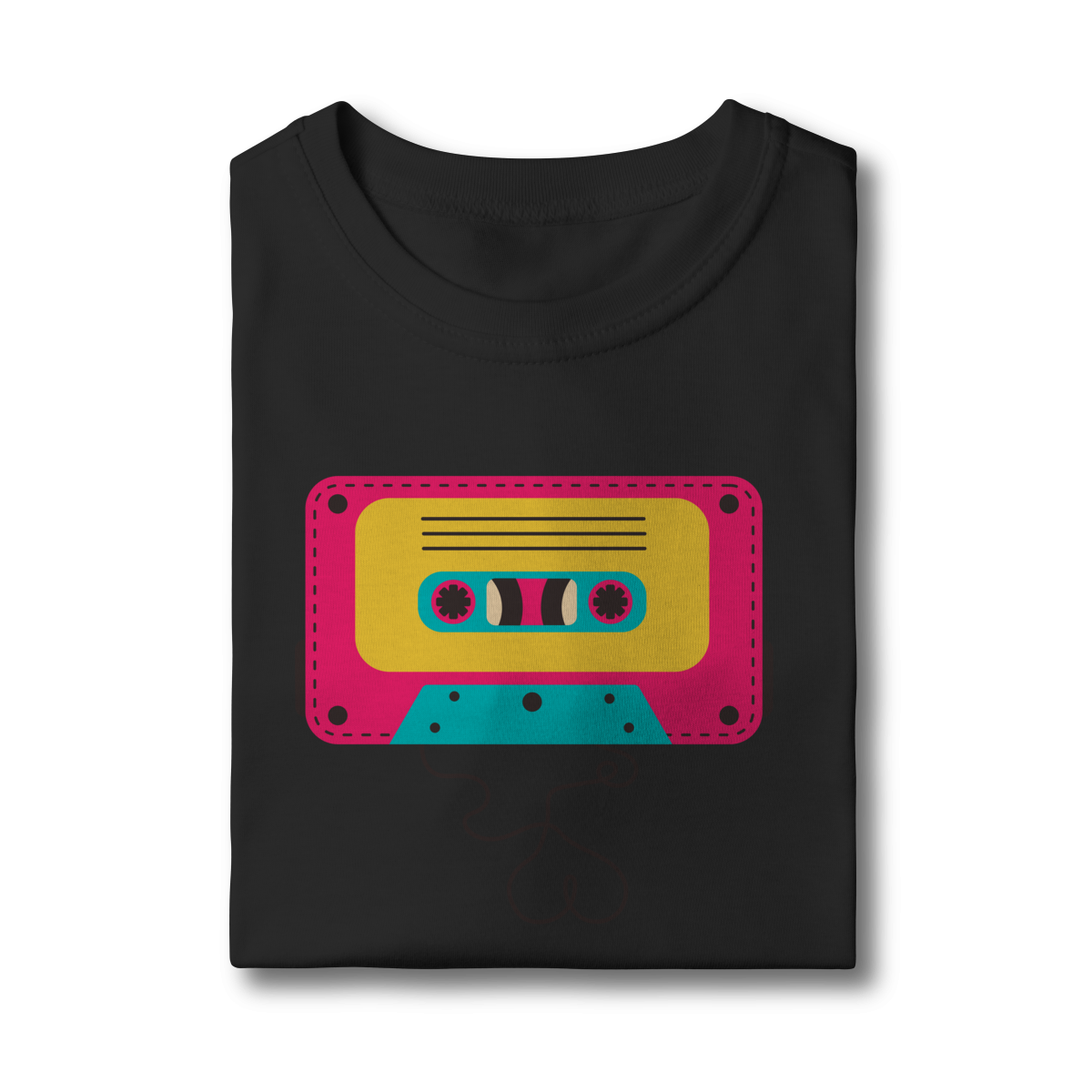Camiseta FITA CASSETE celebra os dias em que a trilha sonora vinha enrolada em fita — e cada lado tinha um sentimento diferente.