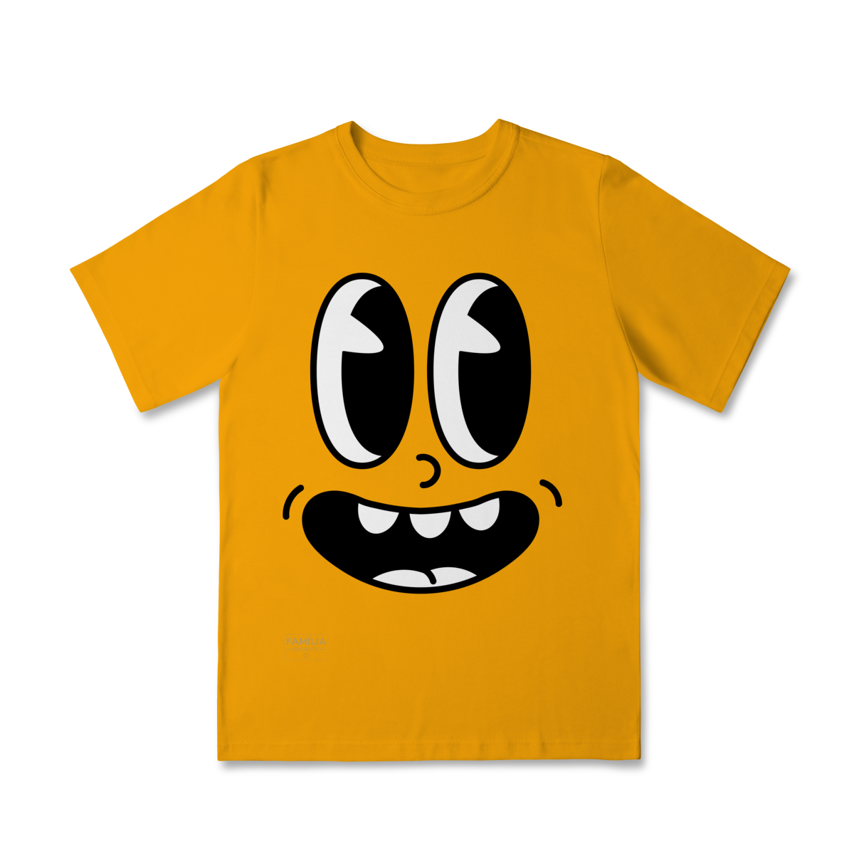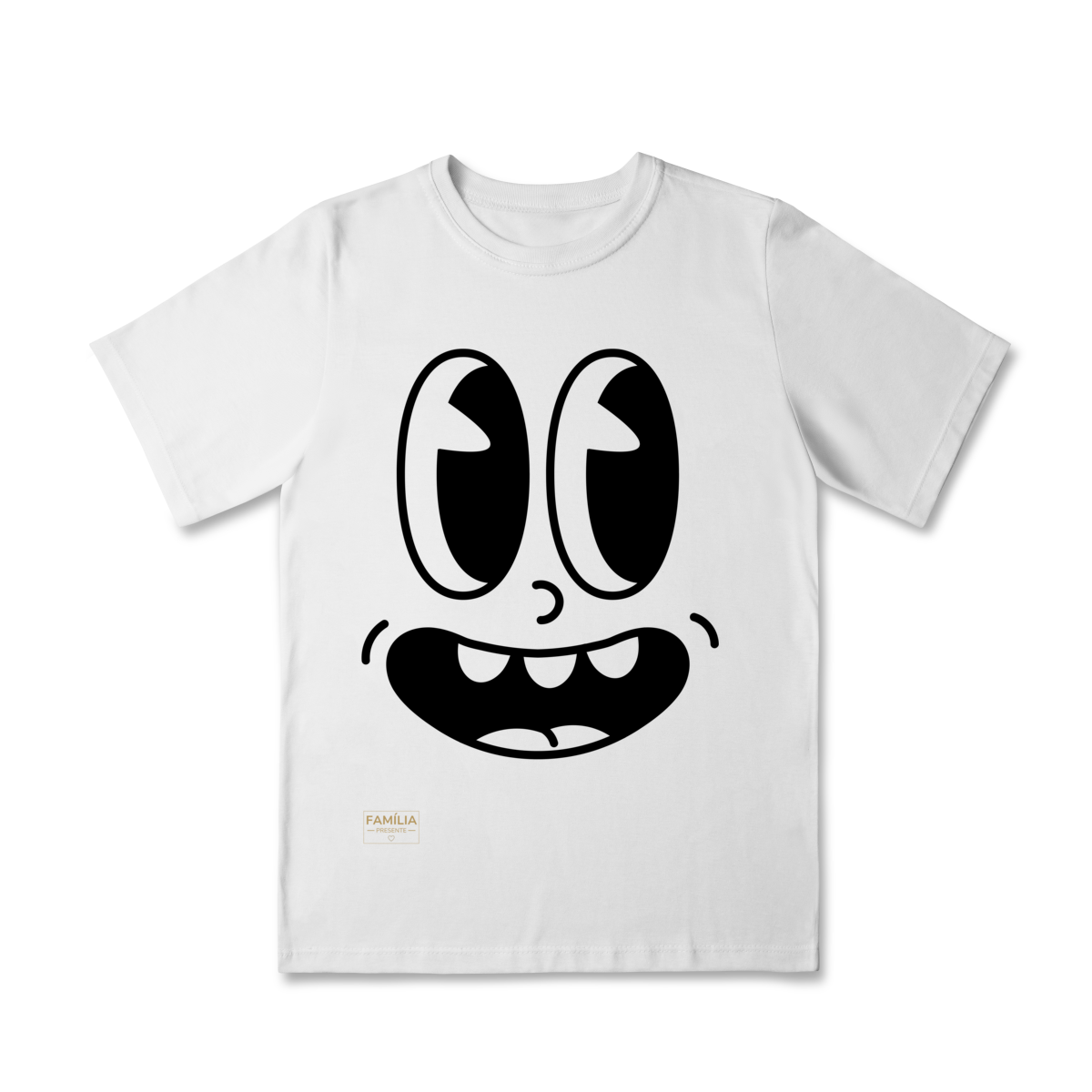 Com estampa minimalista e cor sólida, Happy Feeling traduz o riso espontâneo das crianças que vivem o agora.
