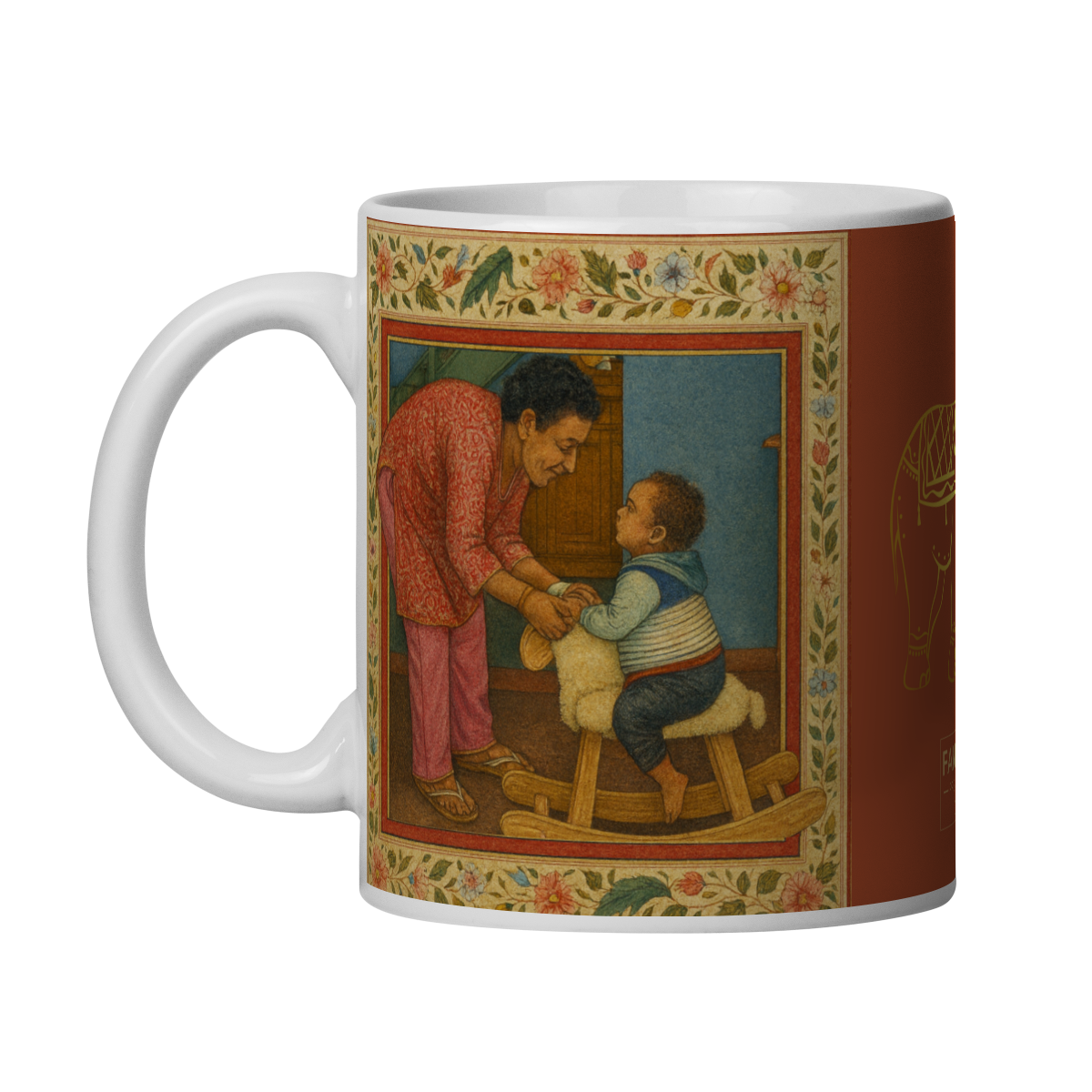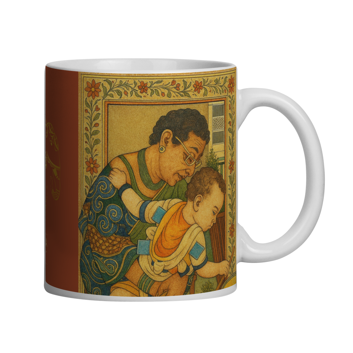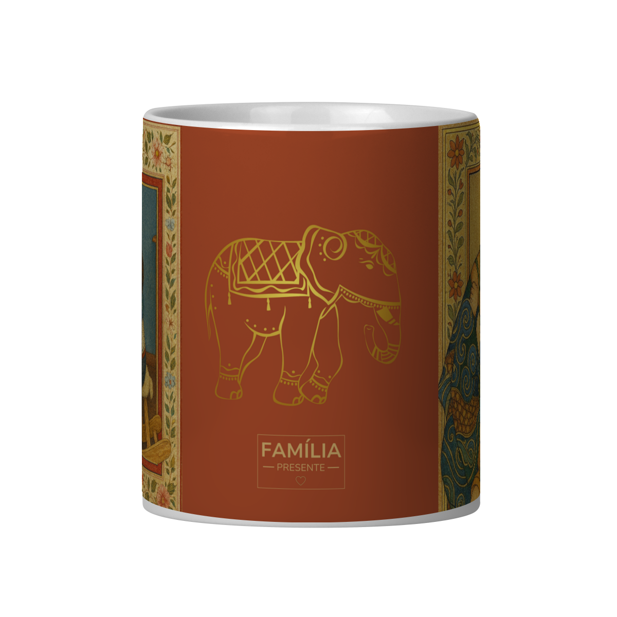 A Caneca Isabel é inspirada na pintura em miniatura indiana, uma das tradições mais sofisticadas do Oriente — nascida entre os séculos XVI e XIX nas cortes dos impérios Mughal, Rajput e Pahari, onde o detalhe minucioso e a espiritualidade se entrelaçam.