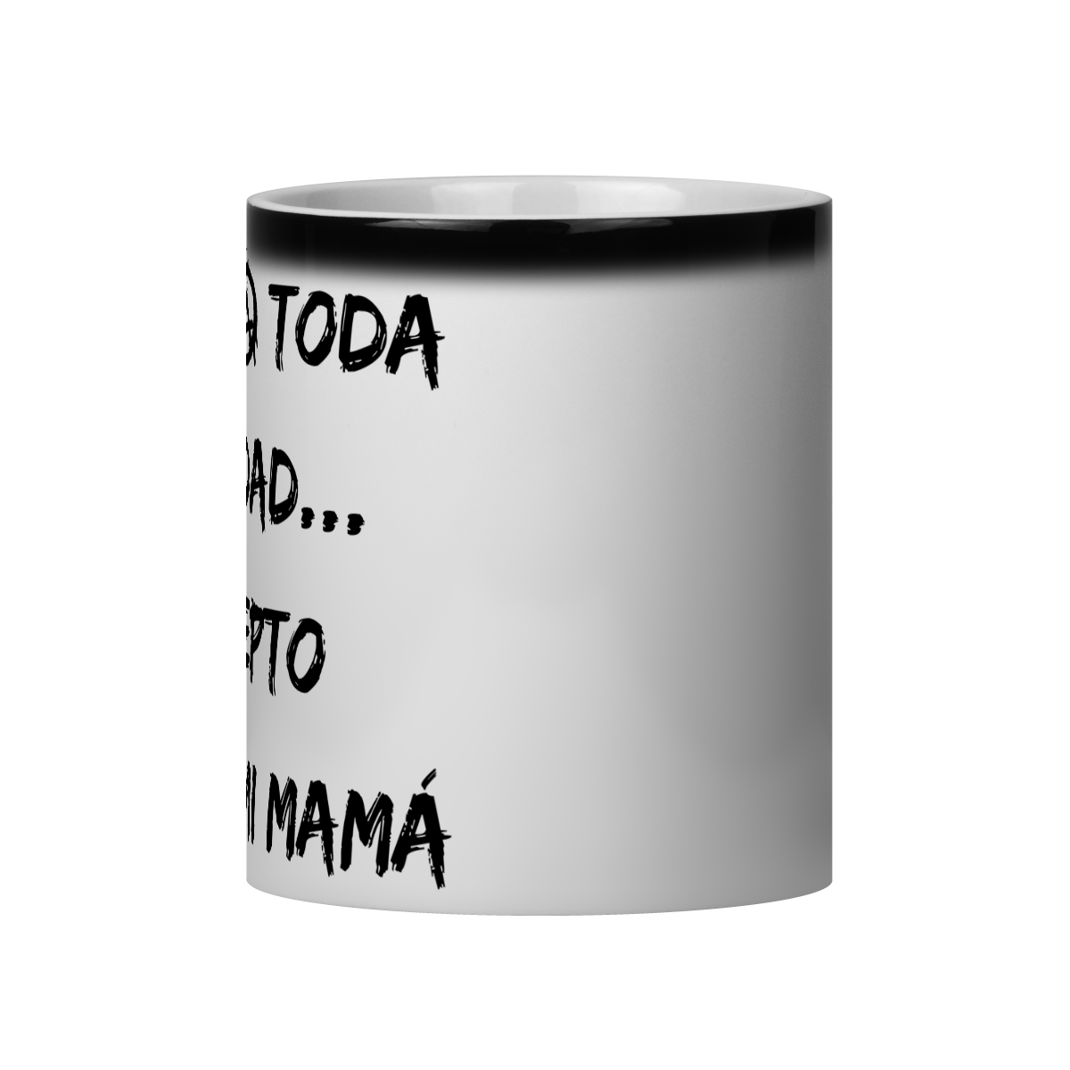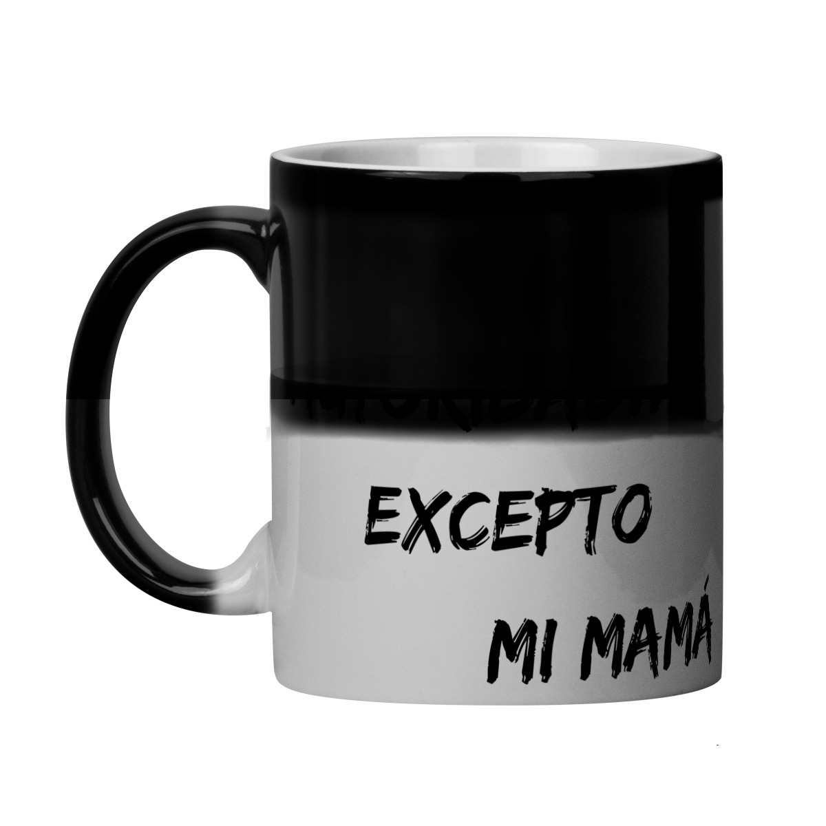 Caneca Mágica Contra toda autoridad excepto mi mamá revela sua estampa com o calor — como quem desperta pra vida.