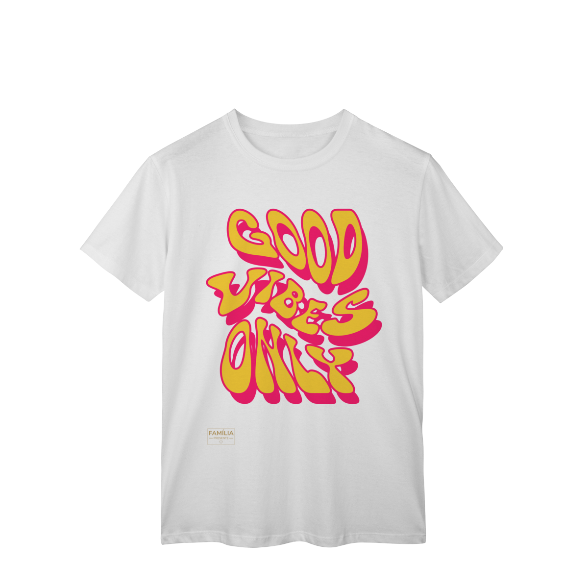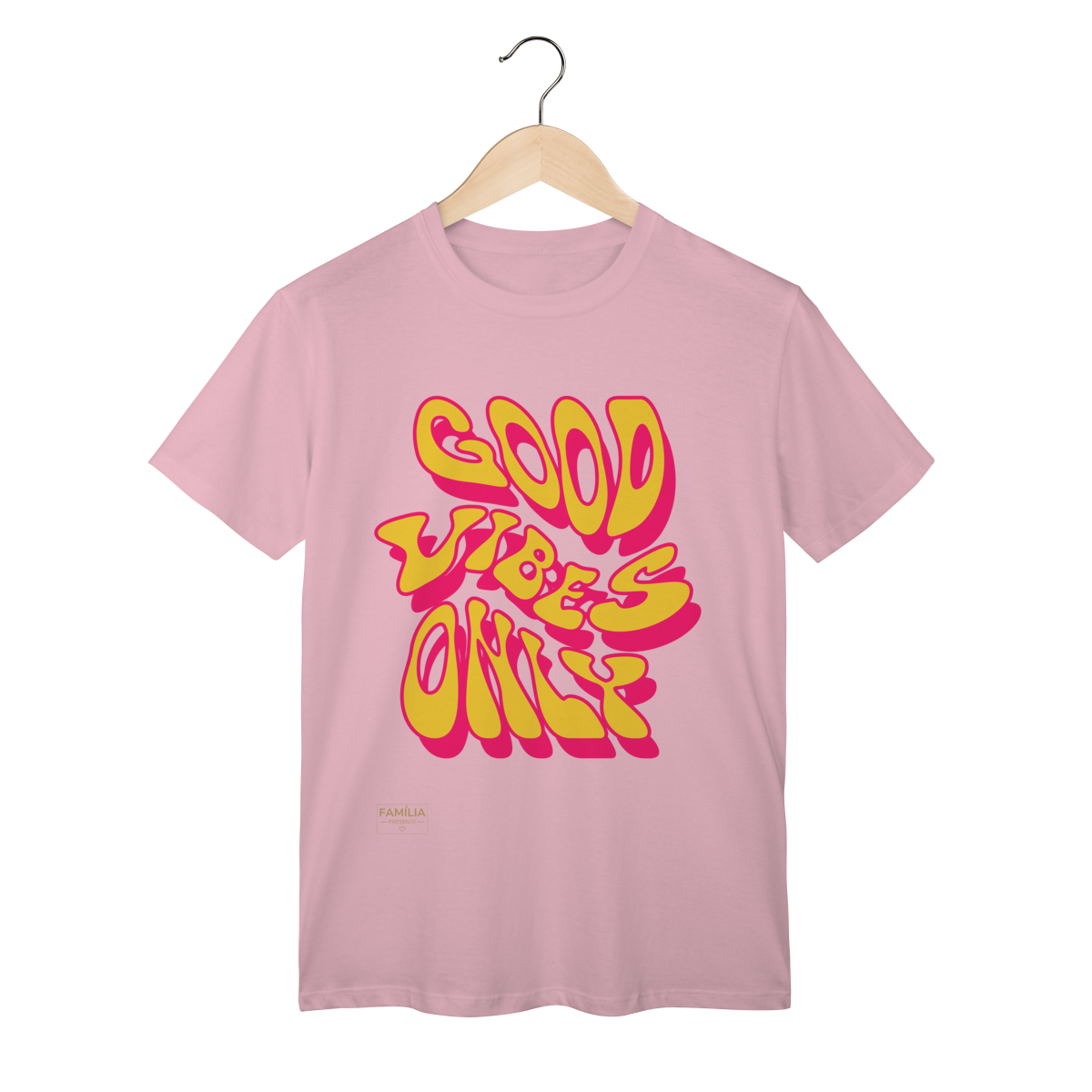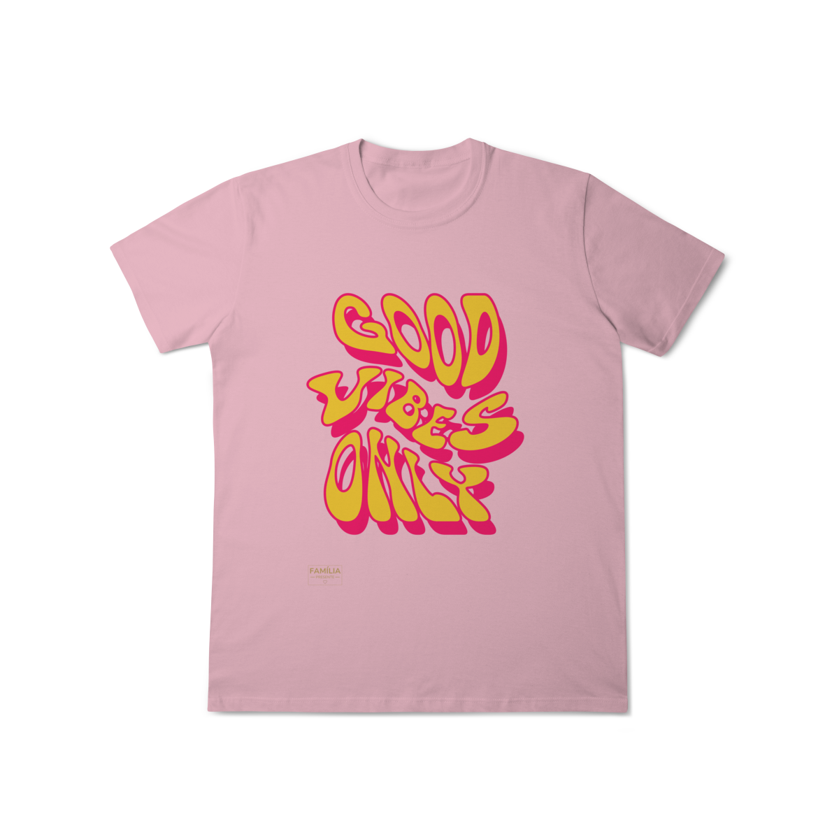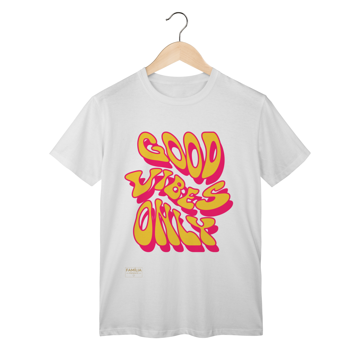 Com estampa retrô inspirada na energia divertida dos anos 90, a camiseta GOOD VIBES ONLY celebra os dias ensolarados, o humor e o afeto que aquecem qualquer encontro.