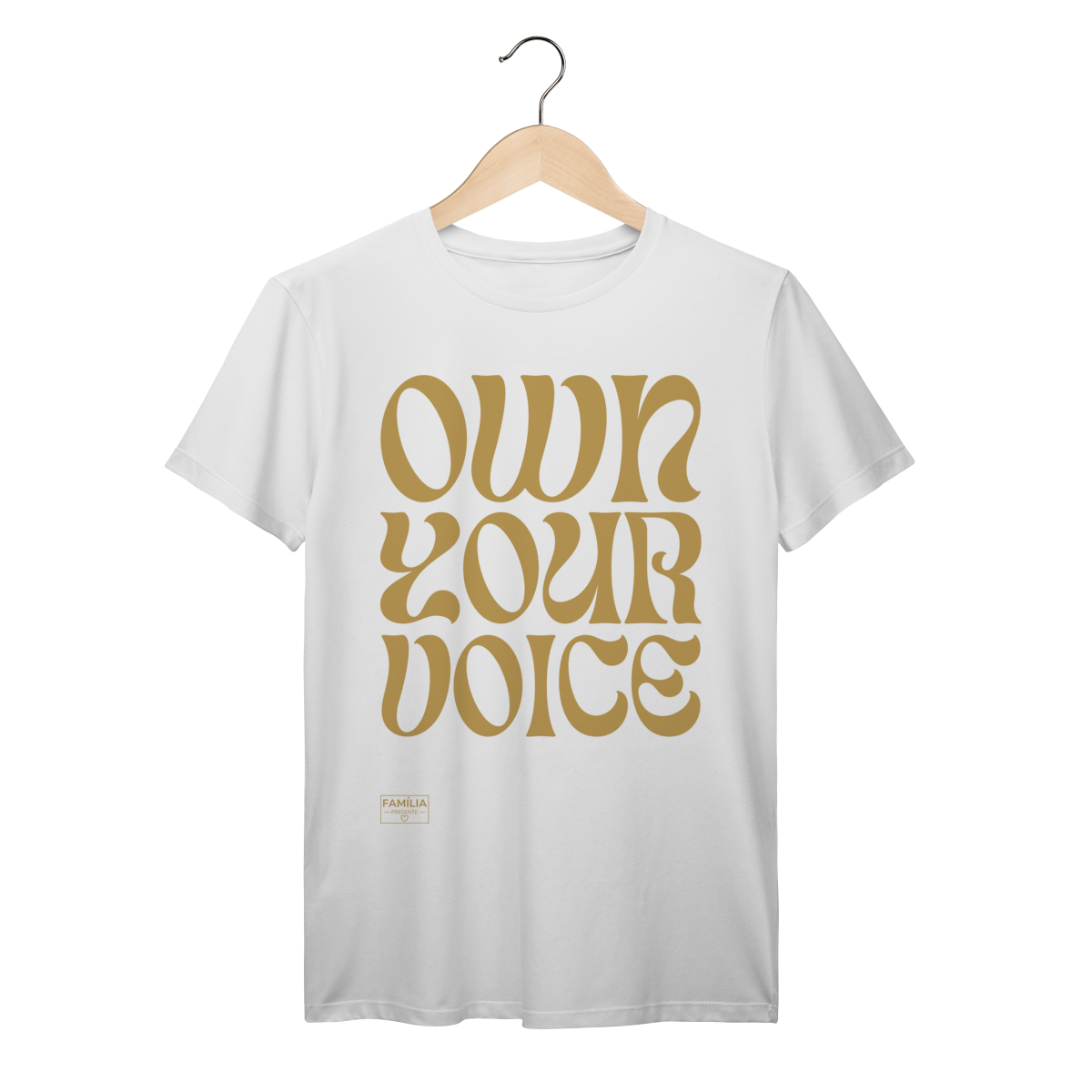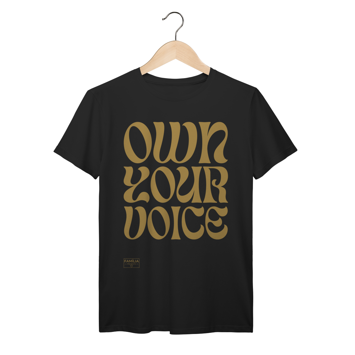 Com design retrô e tipografia marcante, OWN YOUR VOICE é um lembrete para não silenciar o que te move. Vista a sua voz, abrace a sua expressão e celebre o poder de ser quem você é — sem tradução necessária.