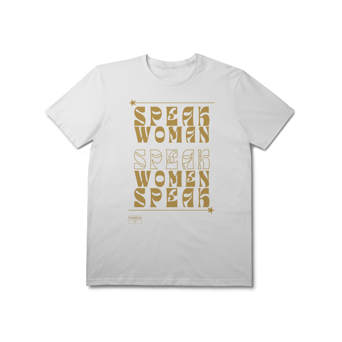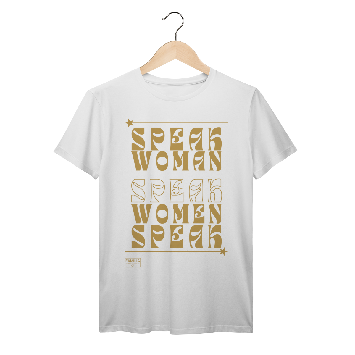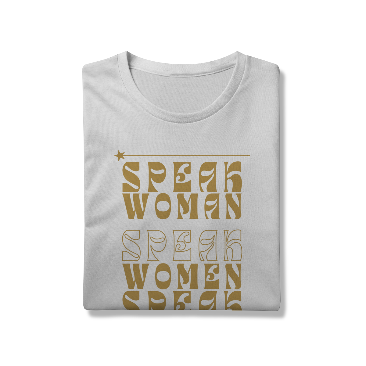 “SPEAK WOMAN, SPEAK” é um manifesto visual sobre voz, autonomia e expressão autêntica.