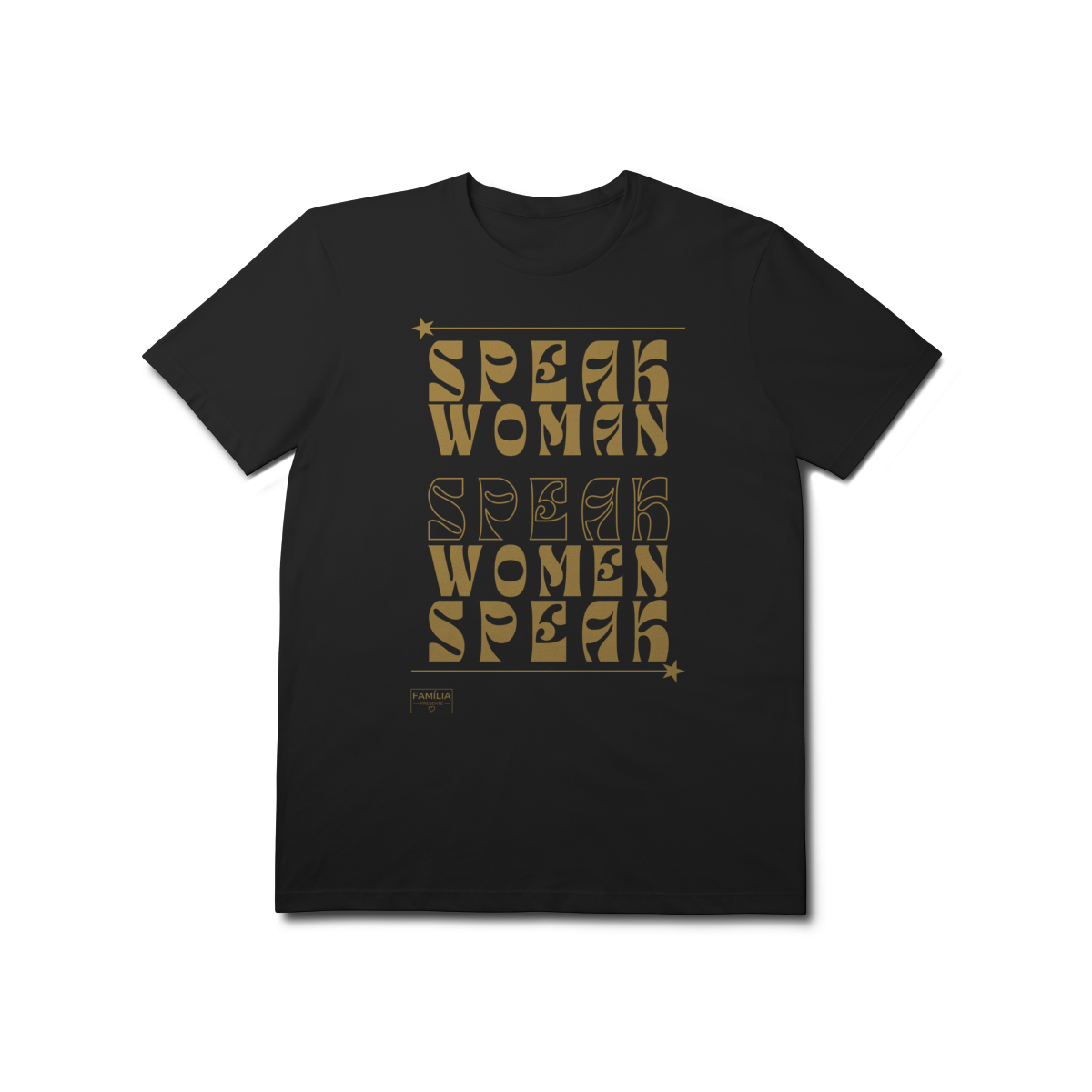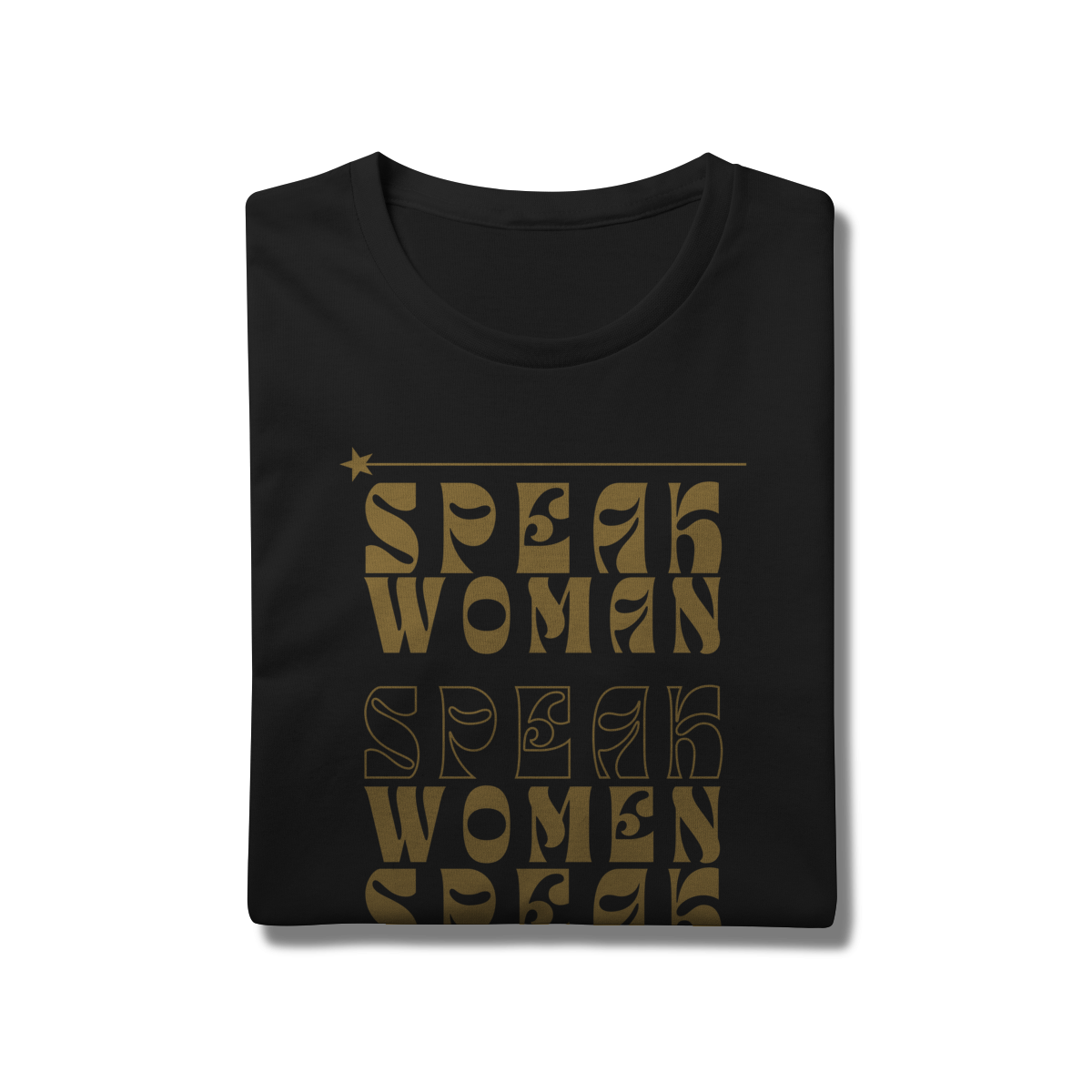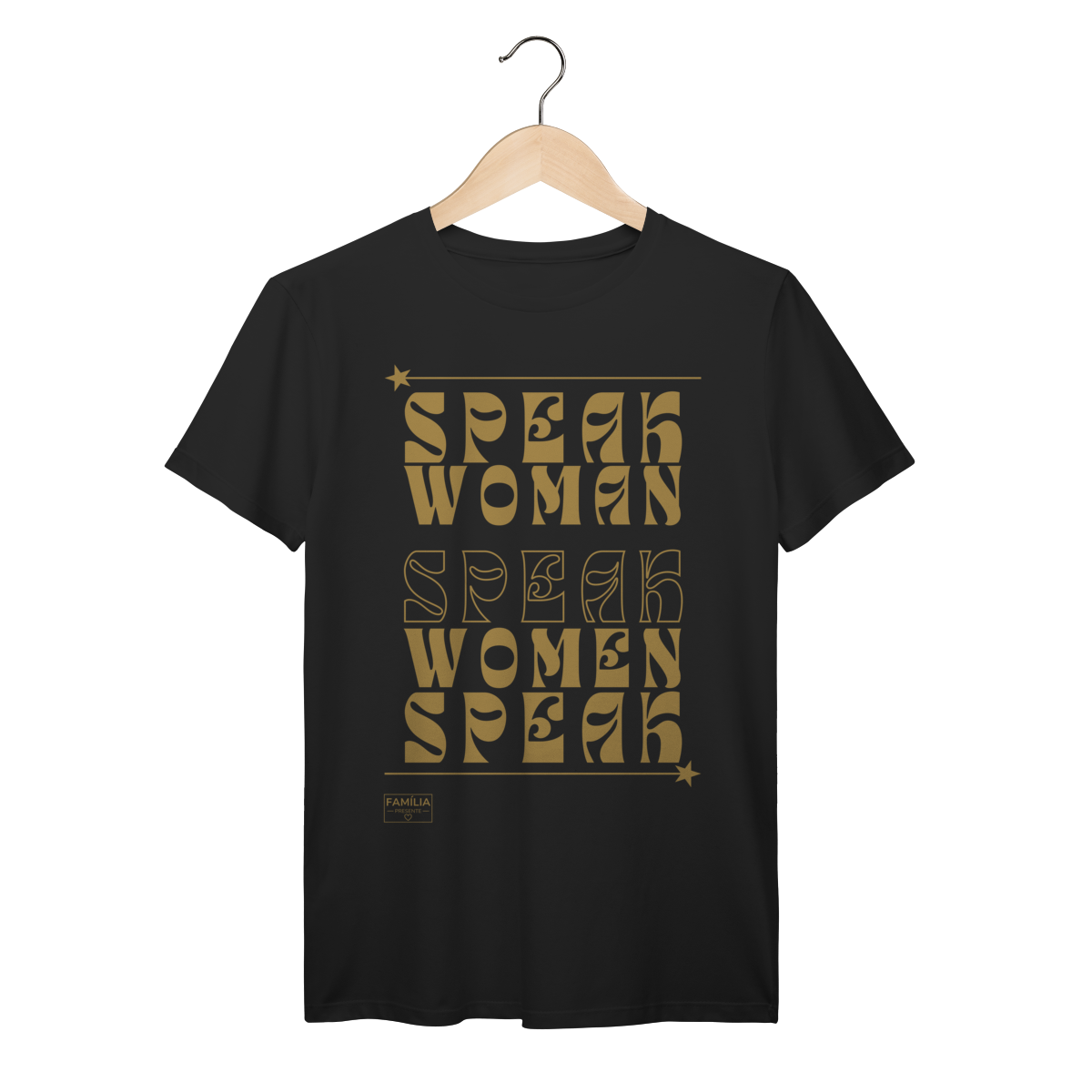 “SPEAK WOMAN, SPEAK” é um manifesto visual sobre voz, autonomia e expressão autêntica.